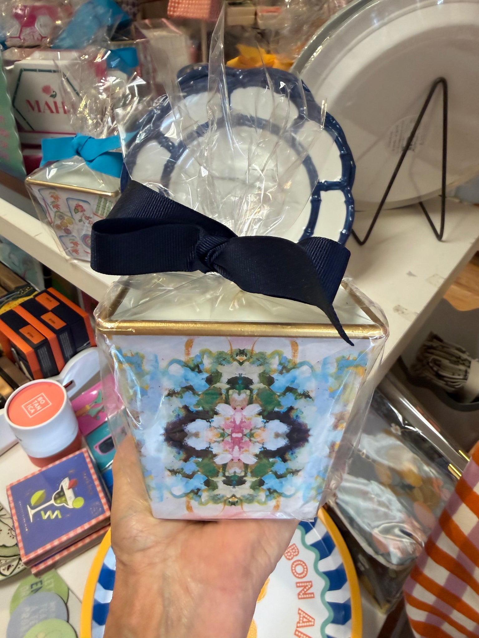 Hand-poured, individually decorated and scented — your Hedge Farm cachepot candle is sure to provide many hours of enjoyment. Every Hedge Farm candle is wicked in cotton and contains the perfect blend of paraffin and vegetable waxes, providing approximately 40 hours of burn time. * Dimensions: 3 1/2" square at top rim, 2 5/8" square at base, and 3.5" tall * Handcrafted of composite material, wrapped in decorative paper, and finished with a burnished gold rim — four protective pads support its base. Proudly made in the USA! * As an added bonus, once your candle is gone, reuse the beautiful container to hold plants and fresh flowers, or as a decorative object * Arrives individually boxed, wrapped in cellophane and embellished with a satin ribbon — ready for gift giving! To ensure safety and enjoyment, always follow the burning instructions on the base of the candle.
