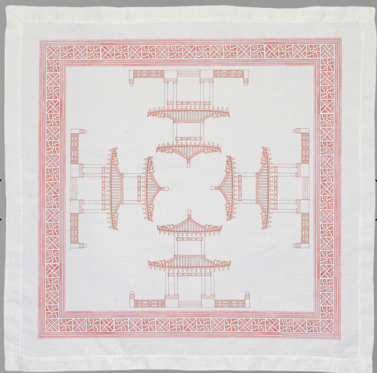 20” x 20”. Made of 55 % Linen / 45% Cotton. Sold as a set of four napkins.