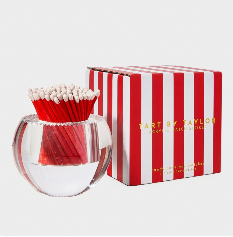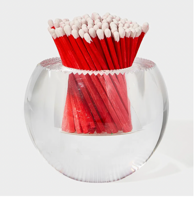 Get fired up with our Acrylic Match Striker! This acrylic match strike is the perfect accessory for your coffee table, desk, or any space that could use a little flair. It features a strike pad on the bottom and comes with 140 matches. Keep this baby ready for any occasion, let's get lit! - 3.5'' Diam x 3'' H - Includes 140 matches (match refills also available) - Features a match strike pad on bottom for igniting matches - Wipe clean with damp cloth