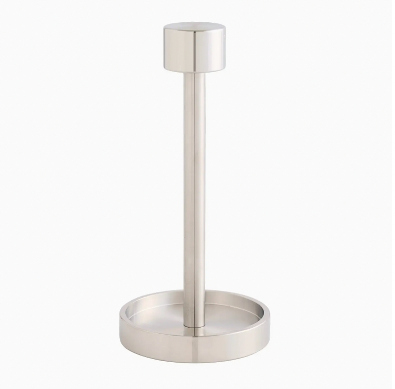 Effortless function meets elevated style. Sleek, polished, and beautifully practical, the Silver Cocktail Napkin Stand is designed to hold our signature cocktail napkin rolls with ease and elegance. The patented design ensures a smooth tear and serve experience while adding a refined touch to any table, bar cart, or countertop. A weighted base keeps it stable for one-handed use—perfect for busy hosts and stylish entertainers. The classic silver finish complements modern, minimalist, and timeless interiors, adding shine without stealing the spotlight.