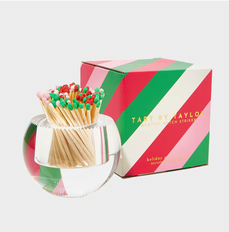 Get fired up with our Acrylic Match Striker! This acrylic match strike is the perfect accessory for your coffee table, desk, or any space that could use a little flair. It features a strike pad on the bottom and comes with 140 matches. Keep this baby ready for any occasion, let's get lit! - 3.5'' Diam x 3'' H - Includes 140 matches (match refills also available) - Features a match strike pad on bottom for igniting matches - Wipe clean with damp cloth